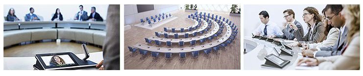 InnovationAn enhanced meeting experience The DCN multimedia conference system integrates audio, video and meeting content (e.g. document retrieval, sharing of presentations and other information) with internet access in one single system. Multimedia conference devices with high-resolution capacitive touch-screens provide an interactive user experience to support meetings optimally. Meeting participants have all the information they need at their fingertips. Important documents, presentations, images and videos can all be displayed and shared. The internet and local content management sites can be accessed to provide additional information on a topic. And the current speaker can be displayed on the high-resolution screens. The interactive system will add value to every aspect of a meeting, giving participants more involvement and comfort, and enabling presenters to inform their audiences more easily and effectively.