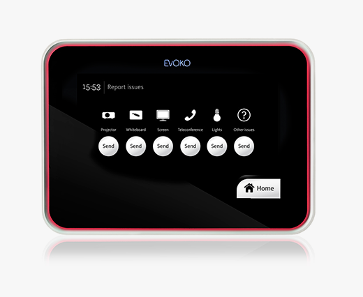 It’s only a fingertip away. The Evoko Room Manager is the beautiful touch-screen solution for all your meeting rooms. Make sure they’re being used in a truly effective way. Forget about double bookings, confusion and interrupted meetings. Book conference rooms easily and then have all information presented on the screen. Integrates seamlessly with the existing e-mailserver. Now you’ll get full insight into your organization’s meeting patterns to optimize resources. Get decision-making support that really cuts costs. If you have rooms for improvement – get in touch with the Evoko Room Manager.